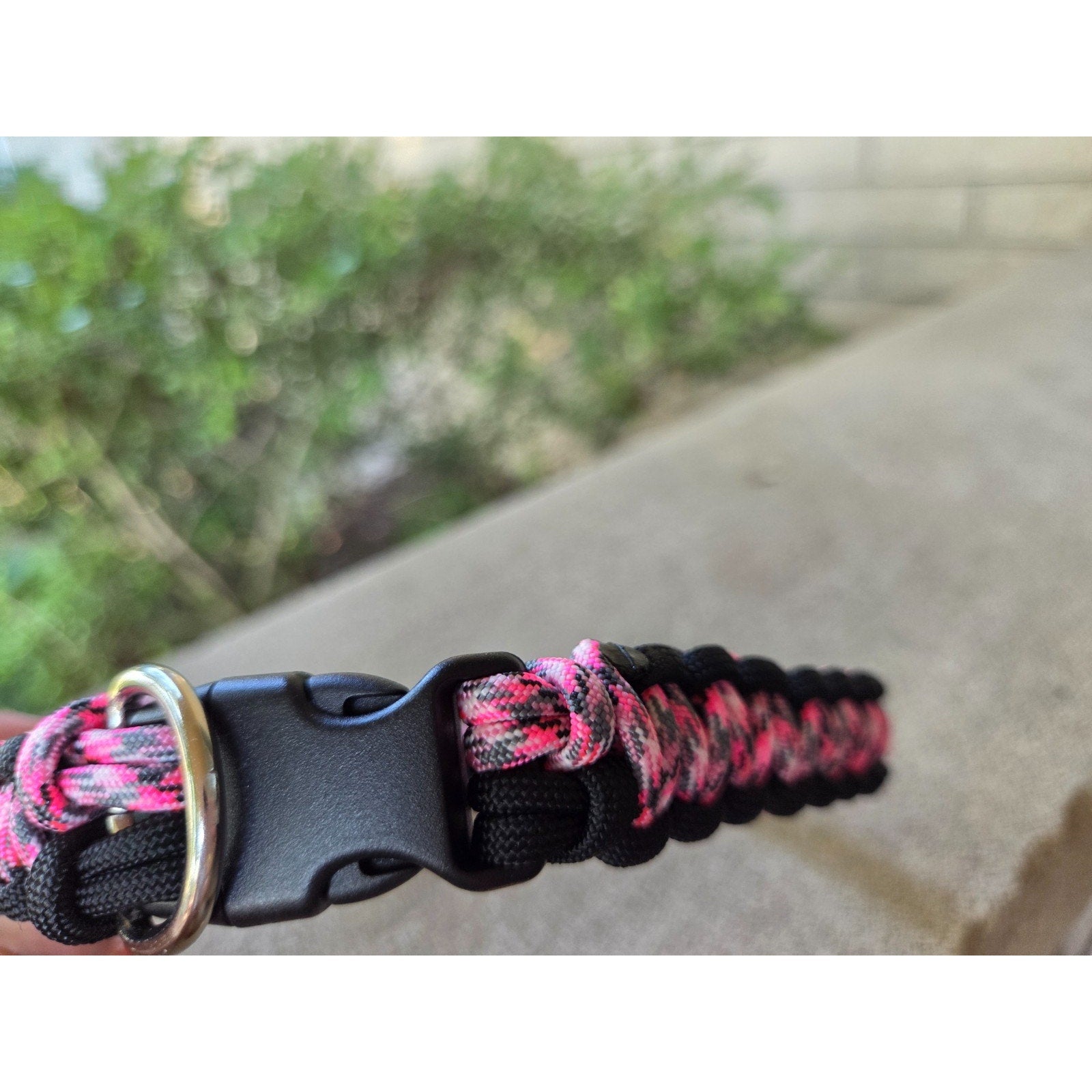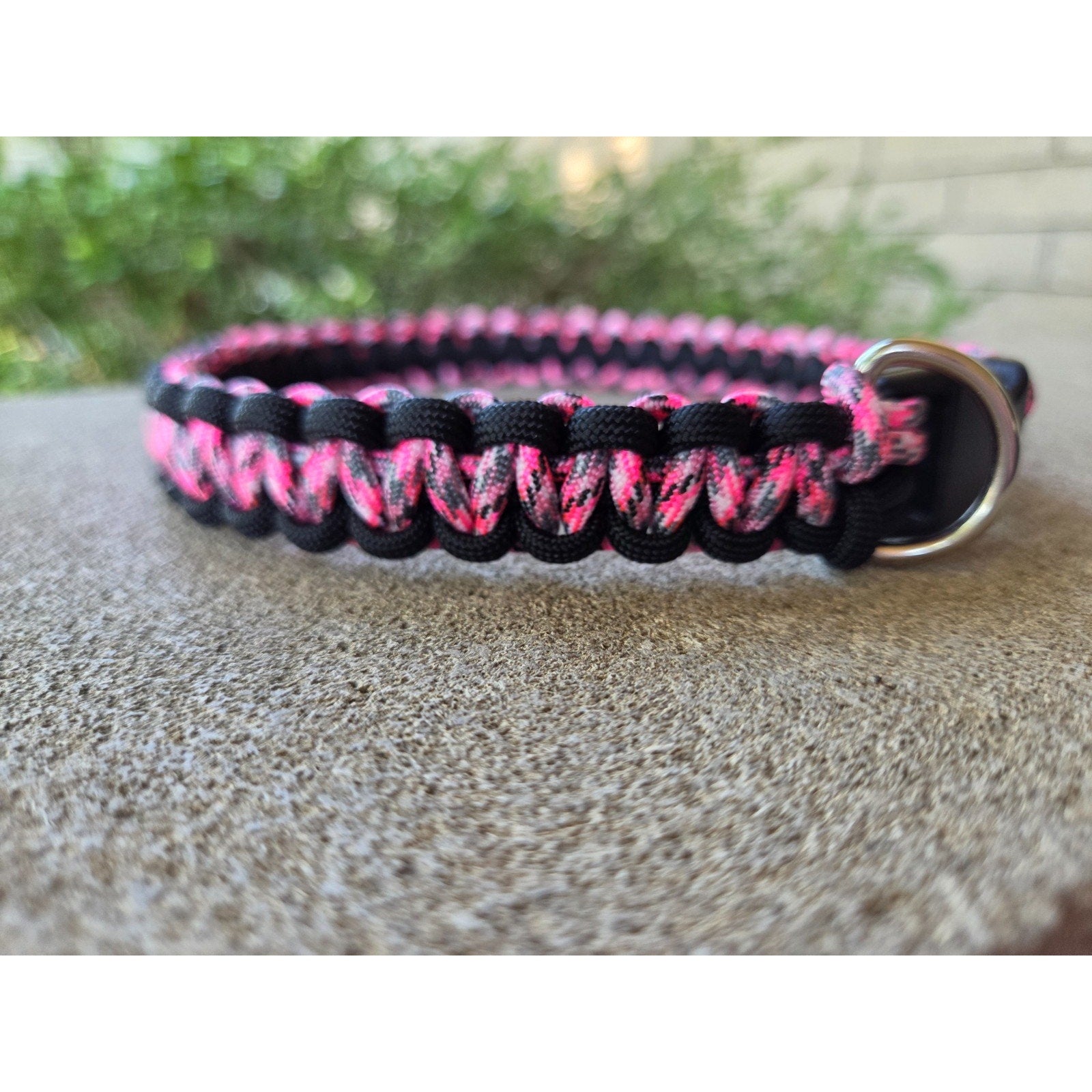 Handmade Paracord Dog Collar Durable Cobra Knot Weave 14–18″ Pink Camo Black
