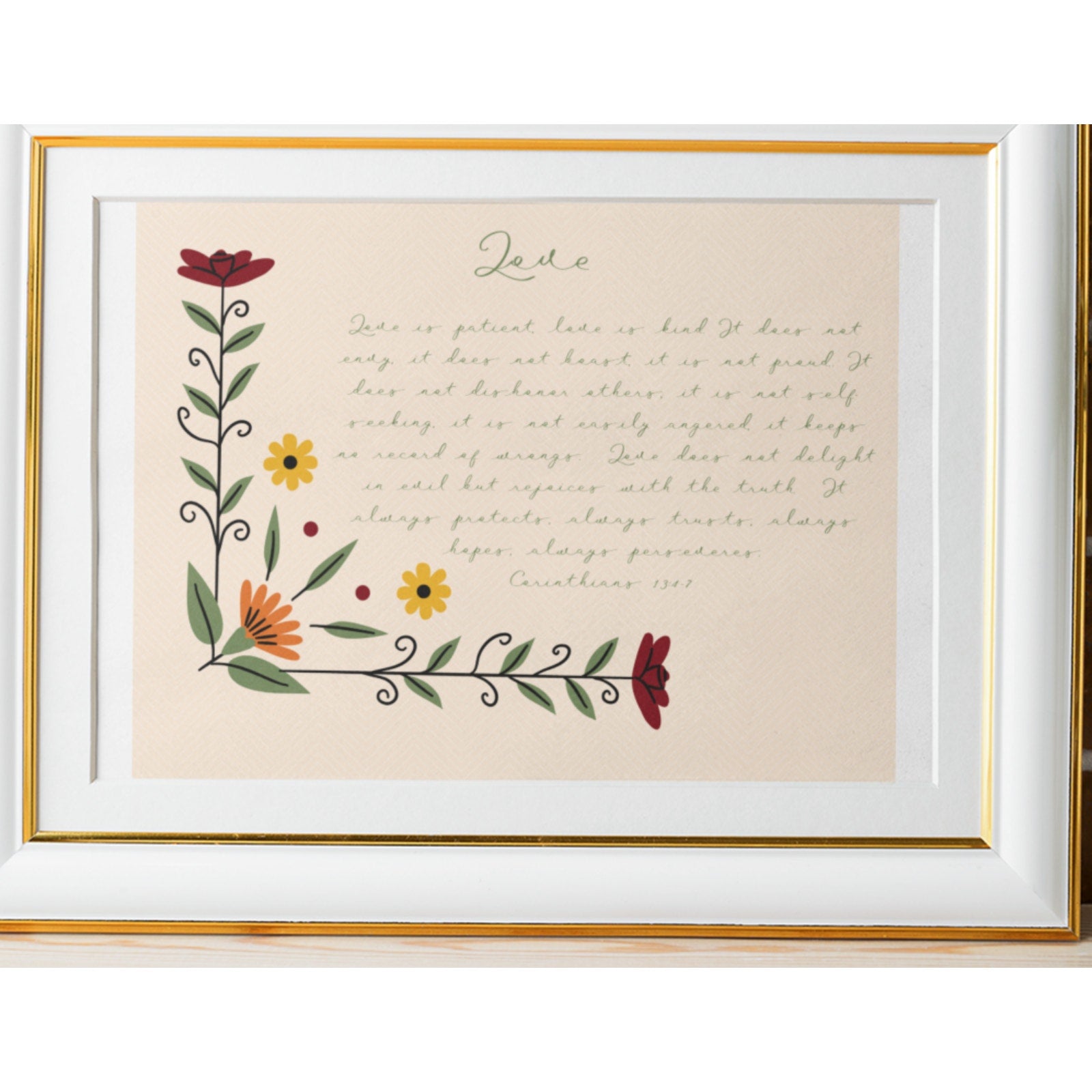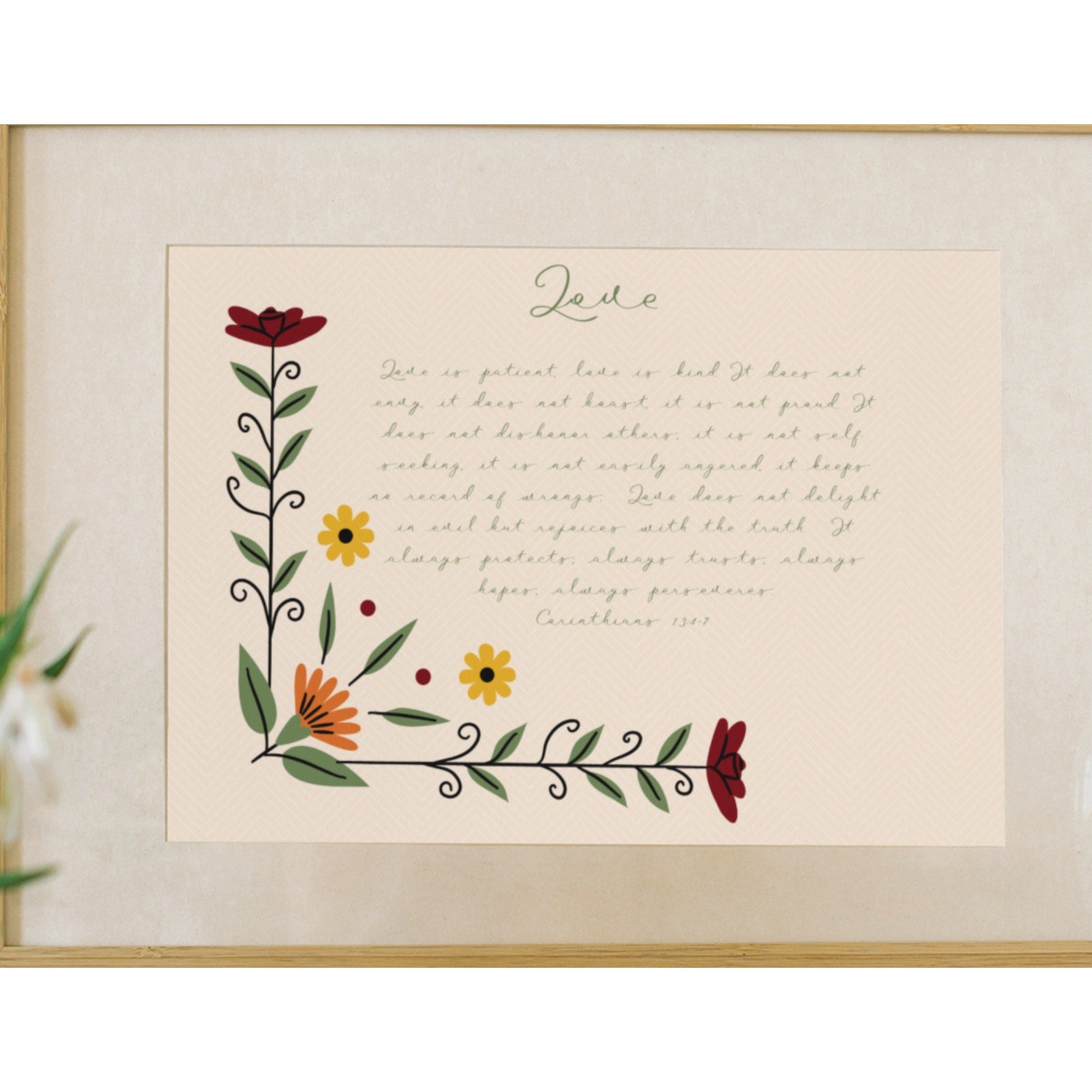 1 Corinthians 13:4-7 Bible Verse Prints Love Is Patient Kind Flowers Foliage