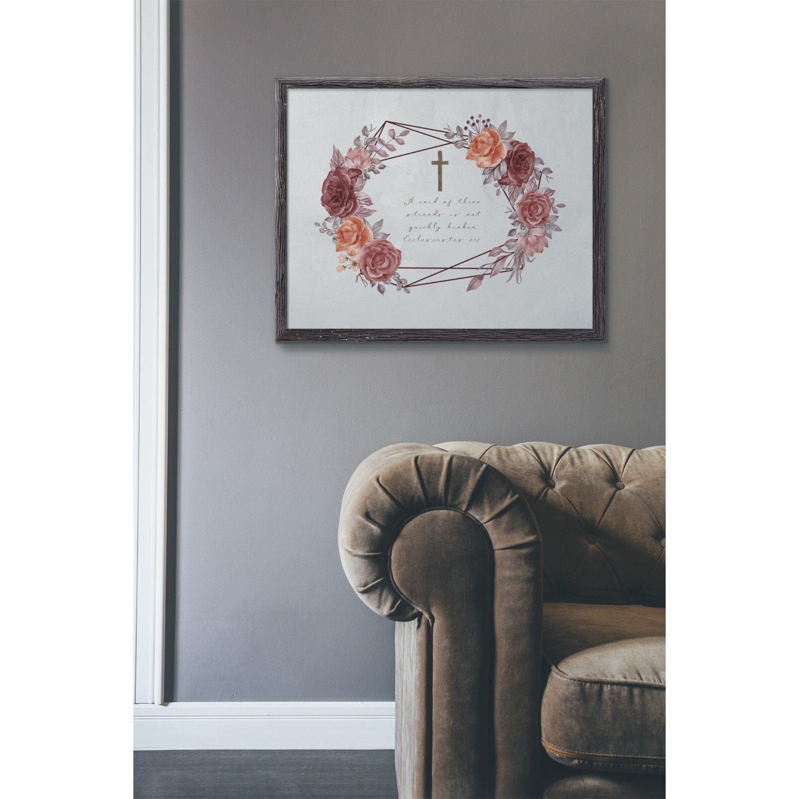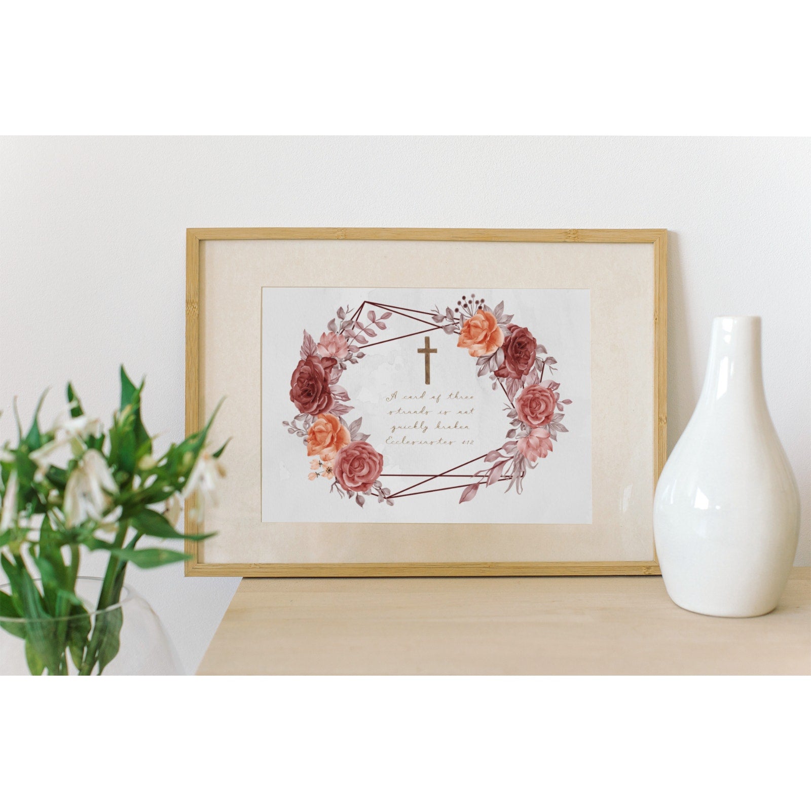 Wall Art Prints Cross Rose Wreath Bible Verse Ecclesiastes 4:12 Love Marriage