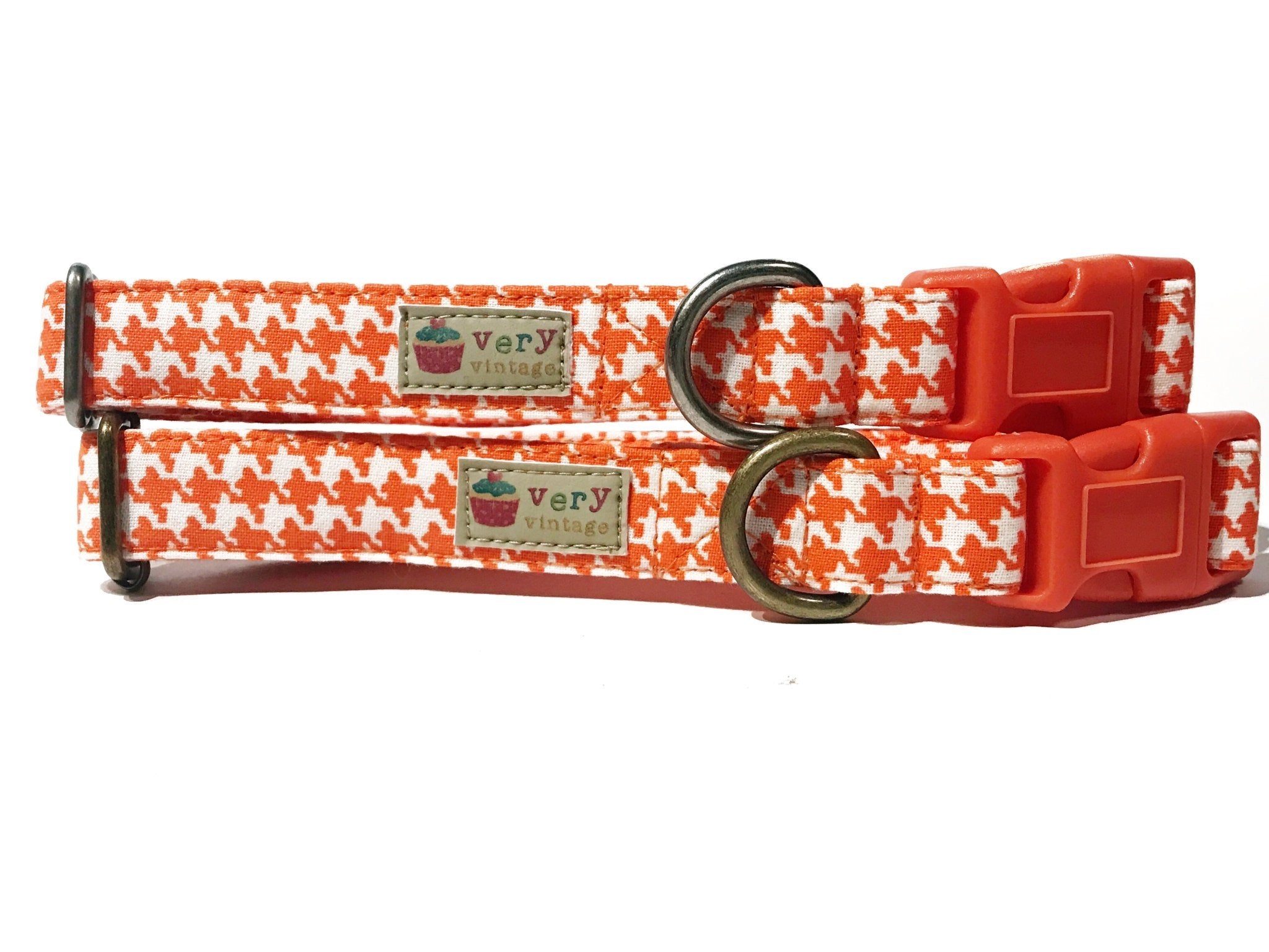 Halloween Dog Collar Houndstooth Plaid Orange & White HANDMADE Organic Cotton